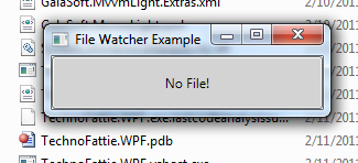 Without closing the program, navigate to the executing directory of your application "[ProjectFolder]\bin\Debug" and create a new text file named "tempfile.txt" Now you should see the button change color to red and display a "0" since the file is empty.